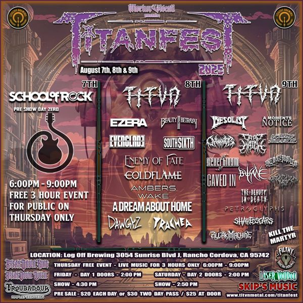 TITVN est. 6.03.21 is a metalcore band that hails from Sacramento, CA and brings not only Metalcore to the table but deathcore influence and tasty hardcore riffs that will keep you head banging or start two stepping. You want thrash? They got it, how about breakdowns? Have you heard their song “The Alpha One?!” Go jam that! Catchy choruses? Better be ready to be HOOKED on "Love" or "Absence of Warmth"! TITVN is a must have band on any metal/rock show or festival that strives to have the best of the best on their line up!